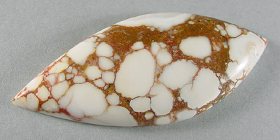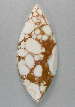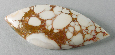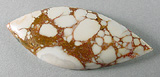 Offered here is an intriguing cabochon of spiderwebbed howlite, from Mexico. It features an outstanding webbed pattern in rusty tan, contrasting wonderfully with the stone's ivory white color. The more commonly seen Utah material never looked so good! This cab has a well rounded dome of 5.5mm, polished to a nice gloss both front and back.