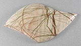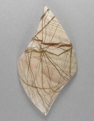 Offered here is an intriguing cabochon of spiderweb imperial jasper, from Mexico. This spectacular example features ornate spiderwebbing in reddish brown and olive against a creamy tan background, which also has a banded pattern of its own. Awesome stuff! It's a one in a million stone that will, hopefully, provide plenty of inspiration. It has a well rounded dome of 6mm, a crisp designer shape, and a brilliantly glassy polish both front and back.