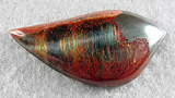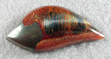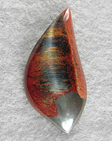 Offered here is a gorgeous cabochon of Australia's rare Marra Mamba tigereye, the finest tigereye ever. This splendid example features blue and gold dominated coloration, with a patch of orange chatoyance at one side, blood red jasper at the other. The large end is dark silvery hematite, adding much character to the stone's artful composition. It has a well rounded dome of 6mm, and an excellent glassy polish both front and back. I do need to mention that the backside has a smallish pit near the edge, and the face has some all but unnoticeable feathers, but they don't detract from this stone atall. It's a steal at well under $3 per carat!